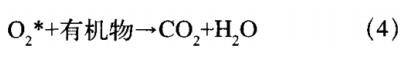 式(4)表明,处于激发态的氧气分子与有机物发生反应,生成CO2和水蒸气,对有机物溶剂沾污比较有效,具有清洗效率高、可选择性好等优点。
