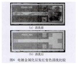 由图7中可以看出,焊环有同样轻微沾污的两只电路,经过清洗封帽的密封面的孔隙率要比未清洗的要好。