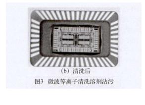 微电子封装过程中产生的沾污严重影响了电子元器件的可靠性和使用寿命。研究表明,微波等离子清洗能有效增强基板的浸润性,降低芯片和基板共晶焊界面的孔隙率,同时也能清除元件表面的氧化物薄膜和有机物沾污,经过等离子清洗,其键合焊接强度和合金熔封密封性都得到提高。
